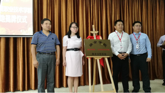 5月10日,东莞职业技术学院(以下简称东职)与融金所校企合作基地深圳揭牌。878365备用网址副主任周虹、金融管理专业负责人谢利人、专任教师袁明智、伍兴国以及融金所副董事长张东波,副总裁辛鎏、刘豐磊,融金学院院长韦颜出席了此次揭牌仪式。这次揭牌是在4月27日东职揭牌基础上,根据互设基地的原则上的一次双向活动,标志双方的合作进入一个互惠共赢的新阶段。