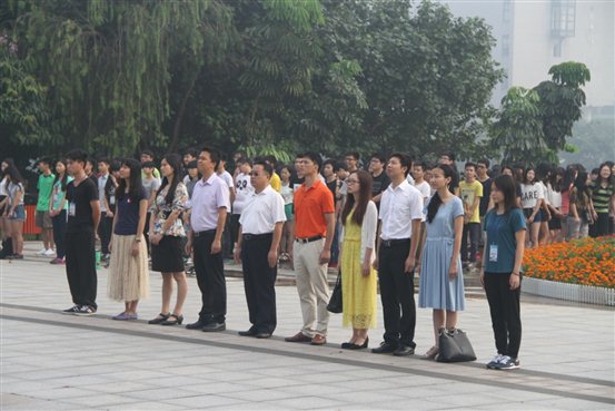 经过雨水的洗礼,清晨的东职校园显的更加生机勃勃,绿意盎然。老师和同学们早早的就来到国旗台广场集合并排好队伍。伴随着激昂雄壮的国歌声,全体师生肃立,行注目礼,鲜艳的五星红旗冉冉升起,迎风飘扬在东职上空。