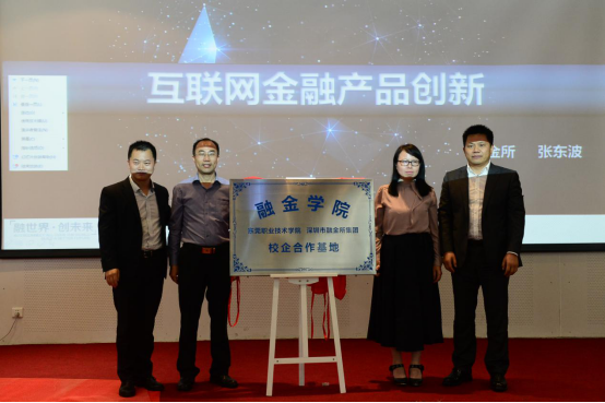 揭牌仪式上,融金所张东波总裁从肌肉与血液,德国“双元制”,工匠精神的角度,阐述了实体经济与虚拟经济的关系,指出校企合作对双方的重要意义。学院院长贺定修教授在致词中指出希望“融金学院”在产教深度融合、校企深度合作,培养高素质高技能型金融人才方面探索一条新路,为“融金学院”今后的发展指明了方向。