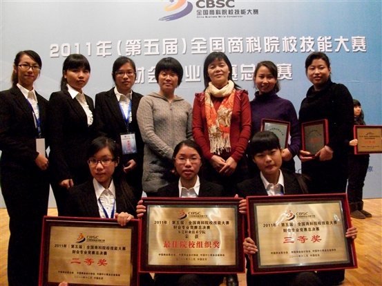 2011年12月9日至11日,全国商科院校技能大赛(第五届)财会技能竞赛总决赛在北京举行。我系派出萧苑珊、刘旭旋等六位同学组成的两支队伍,分别获得一个二等奖和一个三等奖。同时,我系还派出樊萱和陈双莲两位老师参加了此次竞赛教师组的说课比赛。其中樊萱老师获得一等奖,并被授予“全国商科教育财会专业十佳教师”荣誉称号;陈双莲老师获得二等奖,被授予“全国商科教育财会专业优秀教师”荣誉称号。因我院师生在此次竞赛中的优异表现,赛事组委会授予我院为财会专业竞赛最佳院校组织奖。